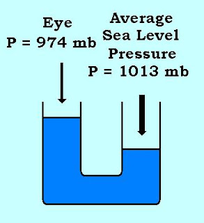 Storm surge is another big concern when it comes to hurricanes. Air pressure presses down against ocean water at an average sea-level pressure of 1013 millibars. In the eye of a hurricane, the pressure is far lower than average and doesn't push down as hard on the water. This causes the water to rise higher than water outside the hurricane. This moving hill of water carried in the center of the hurricane is known as storm surge.